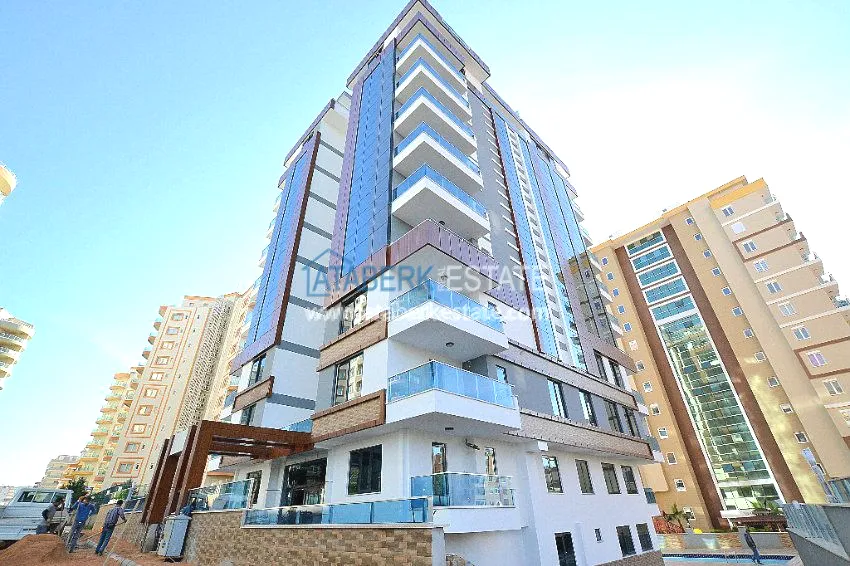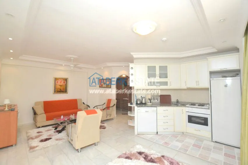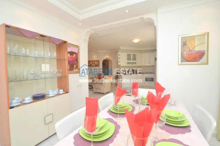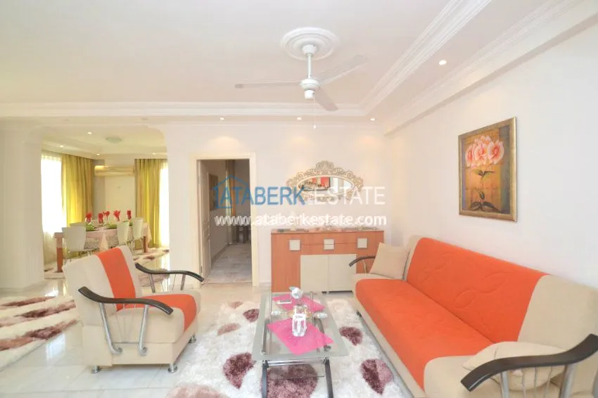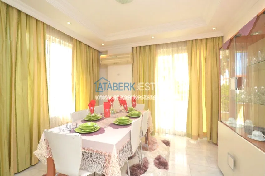 Комфортабельные трехкомнатная квартира с мебелью в районе Тосмур всего в 300 метрах от оборудованных пляжей Средиземного моря.