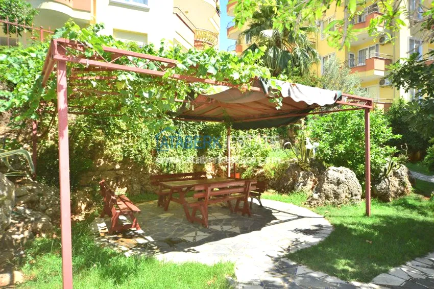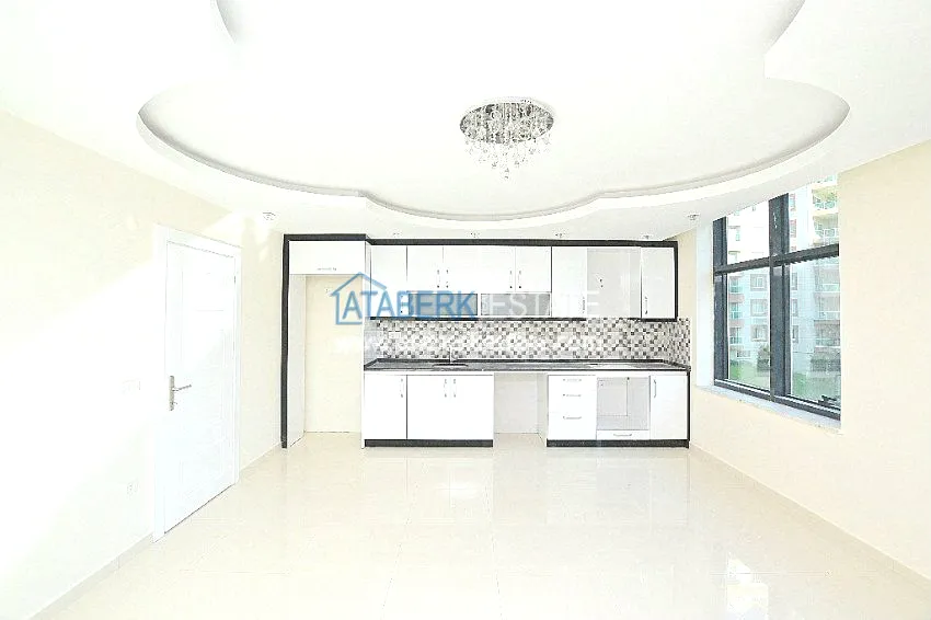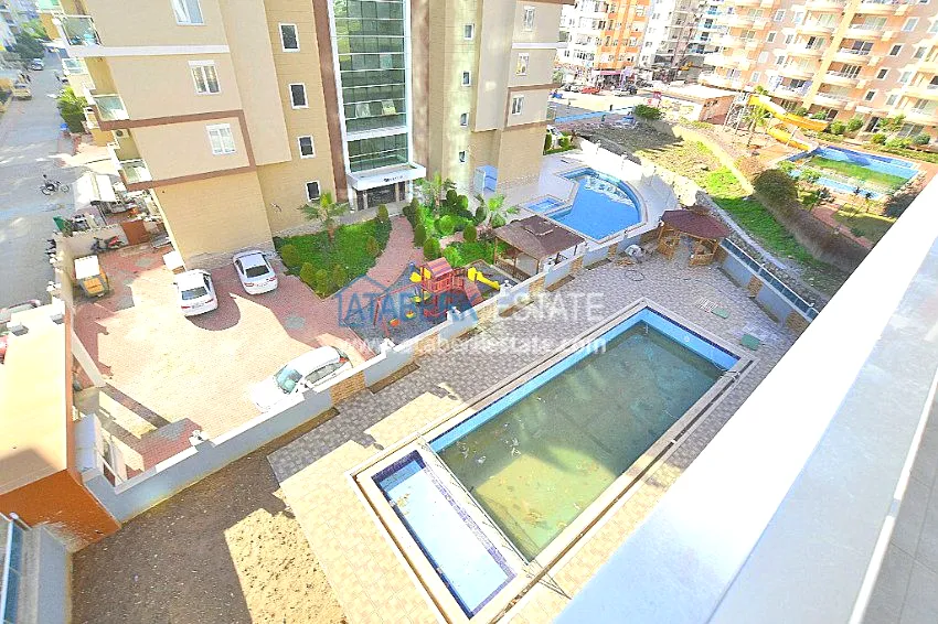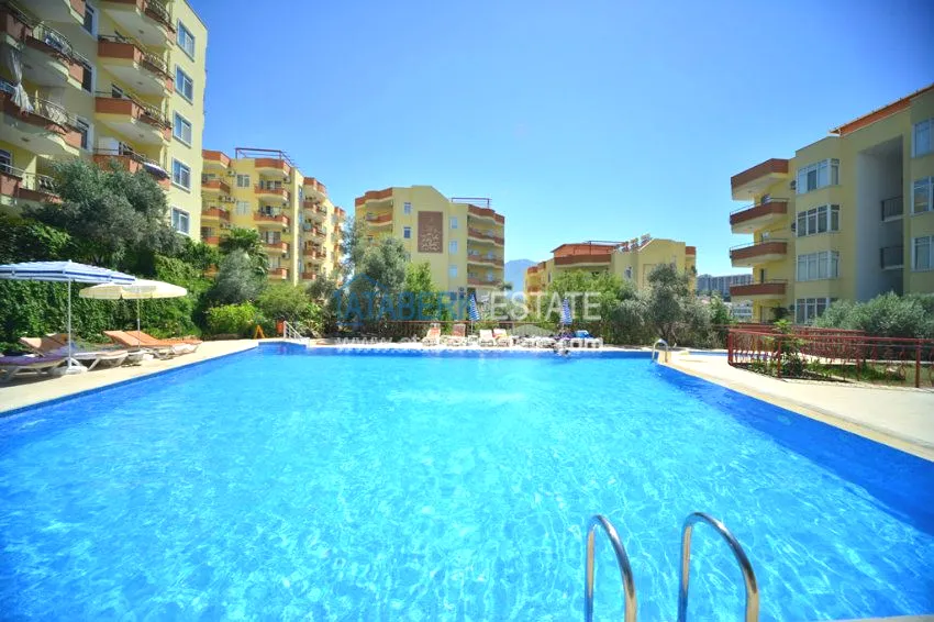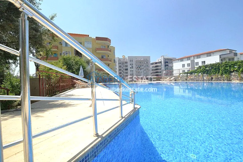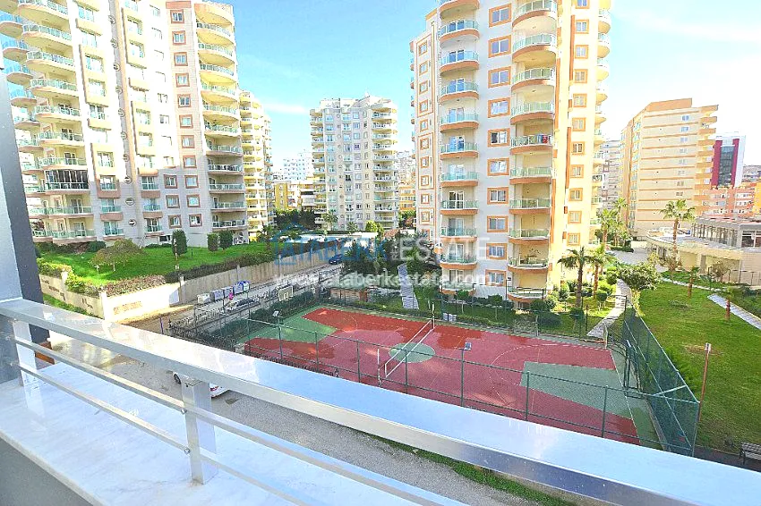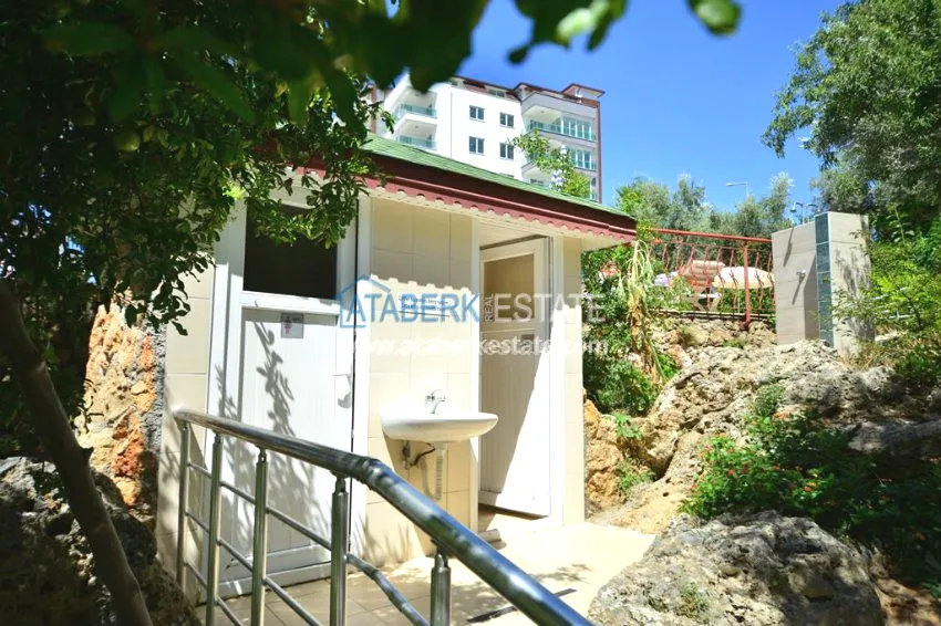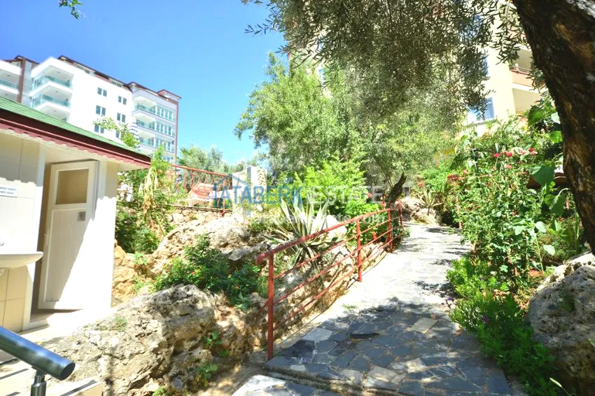 Расположение: комплекс находится в районе Тосмур. Всего в 300 метрах от оборудованных пляжей Средиземного моря и набережной. Недалеко от комплекса приезжают рынки со свежими фруктами и овощами, магазины и супермаркет Мигрос, рестораны и кафе, пекарня, набережная вдоль реки ДимЧай, хорошая транспортная развязка. Квартира находится на первом этаже в одном из 6ти этажных блоков, окна выходят на юго-восточную сторону с видом на зеленый сад.