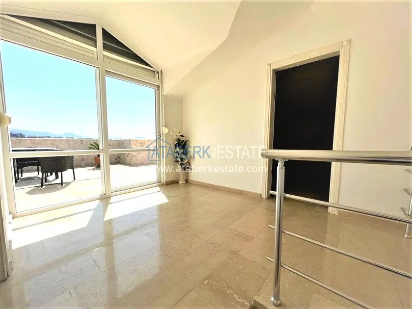 Пентхаус расположен на двух верхних этажах 10-этажного дома, имеет красивый открытый вид на горы и море. Двухуровневые апартаменты общей площадью 217 м2, планировки 4+1 – салон, американского типа кухня, 4 спальни, 2 ванные комнаты, 2 балкона и просторная открытая терраса. Дуплекс выставлен на продажу в том виде, который представлен на фото.