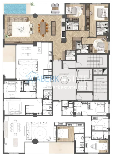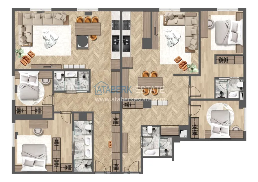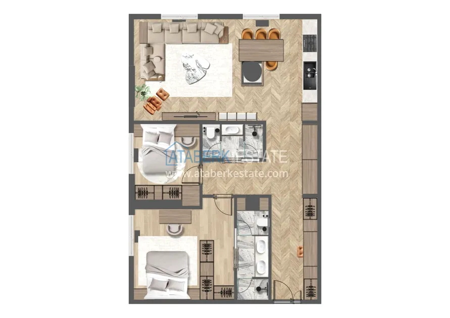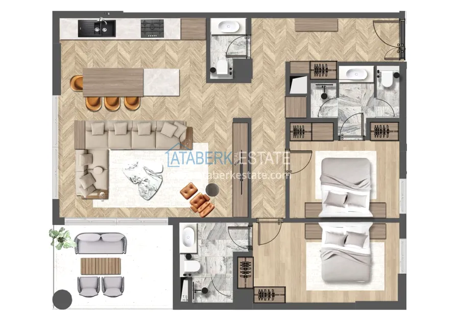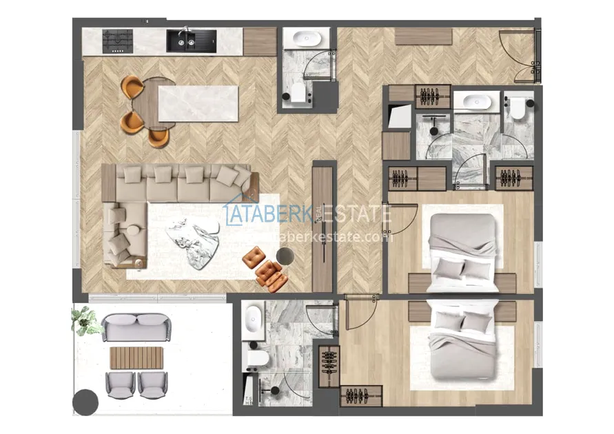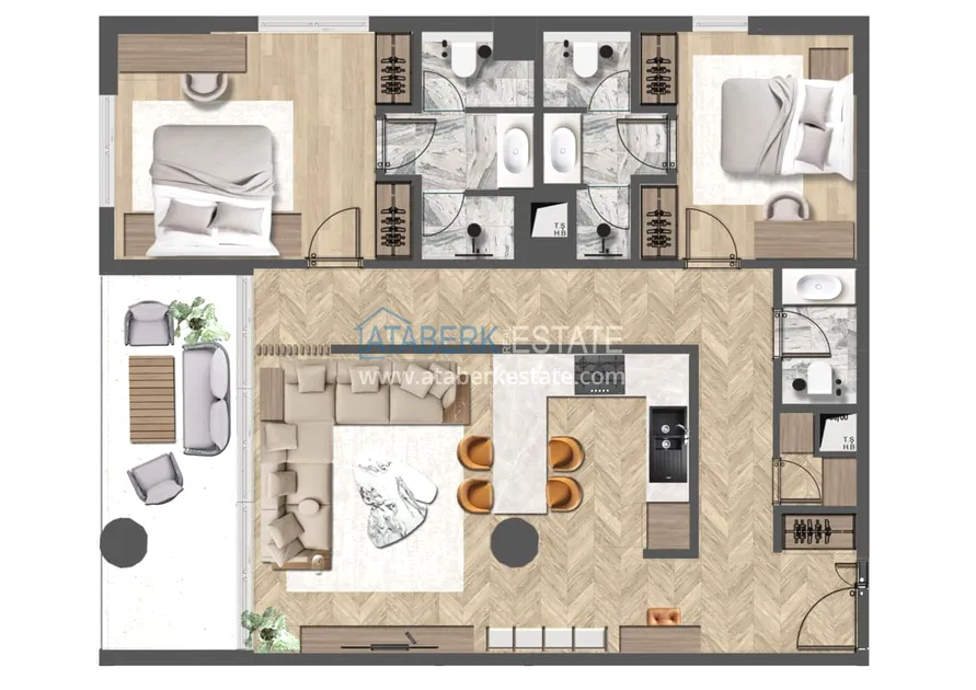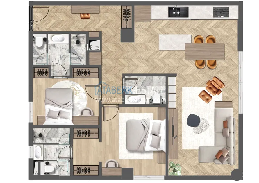 Проект, созданный в натуральных тонах с применением современных решений, отличается от типичного жилья классической жилищной типологии и сочетает в себе стиль городской жизни Анталии и удовольствие от проводимого отпуска. Планировки квартир выполнены с учётом нужд любой семьи, дизайн кухни выполнен в современном нестареющем стиле. К продаже представлены следующие планировки: 2+1, 3+1, 4+1 и 6+1 площадь варьируется от 140 до 352 м2. Апартаменты будут декорированы в соответствии с последними тенденциями моды и стиля и будут располагать всеми технологиями, необходимыми для длительного комфортного проживания. Также в квартирах будет установлена система «Умный дом», теплый пол и комплект бытовой техники.