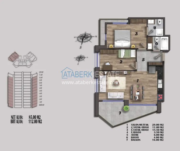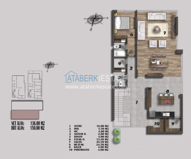 Проект реализуется на участке площадью 9 911 м2, является воплощением стиля, комфорта и инноваций. Состоит из трех блоков по 9 этажей на 102 квартиры и 8 двухэтажных вилл, и включает широкий выбор развлечений, соответствующий вашим индивидуальным потребностям. На выбор представлены квартиры следующих планировок: 1+1 площадью 88 м2 (нетто 66 м2), 2+1 площадью 112 м2 (нетто 95 м2), террасные пентхаусы 3+1 и 4+1 площадью 162 и 374 м2 (нетто 135 и 206 м2). Все виллы планировки 5+1 площадью 350 м2. Для вашего комфортного проживания застройщик включил ряд особенностей в каждую недвижимость, чтобы вы чувствовали себя как дома. Система "умный дом" позволит управлять освещением, температурой и безопасностью с помощью простого нажатия кнопки. Полы с подогревом обеспечат теплый и уютный дом даже в холодные зимние месяцы. Также все квартиры будут оснащены кондиционерами Daikin/Bosch для поддержания приятной температуры. Рольставни с электроприводом обеспечат приватность и защиту от солнечных лучей. В качестве приятного бонуса предлагается встроенная техника от признанных брендов FRANKE/SIEMENS - варочная плита, вытяжка и духовка. Лакированные межкомнатные двери придадут вашей недвижимости элегантность и изысканность, а наружные двери из высокопрочной стали обеспечат надежность и безопасность. Окна с двойными стеклопакетами ПВХ гарантируют хорошую звукоизоляцию и сохранение тепла. Встроенный шкаф в прихожей предоставит вам удобное место для хранения, а светодиодное освещение добавит особый шарм и атмосферу в вашу новую недвижимость.