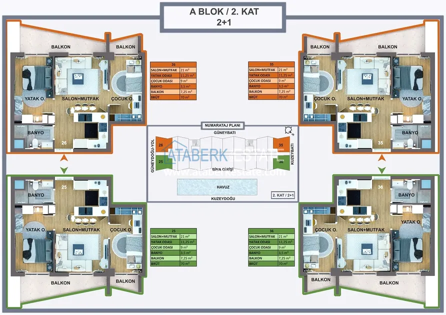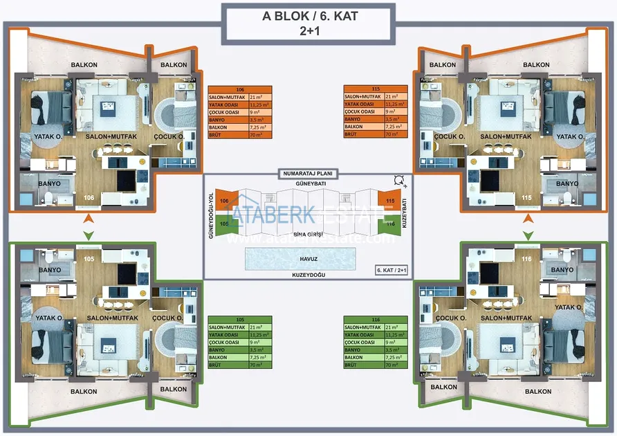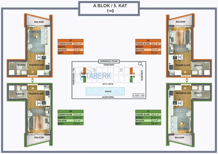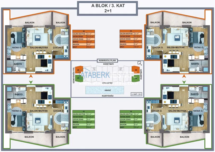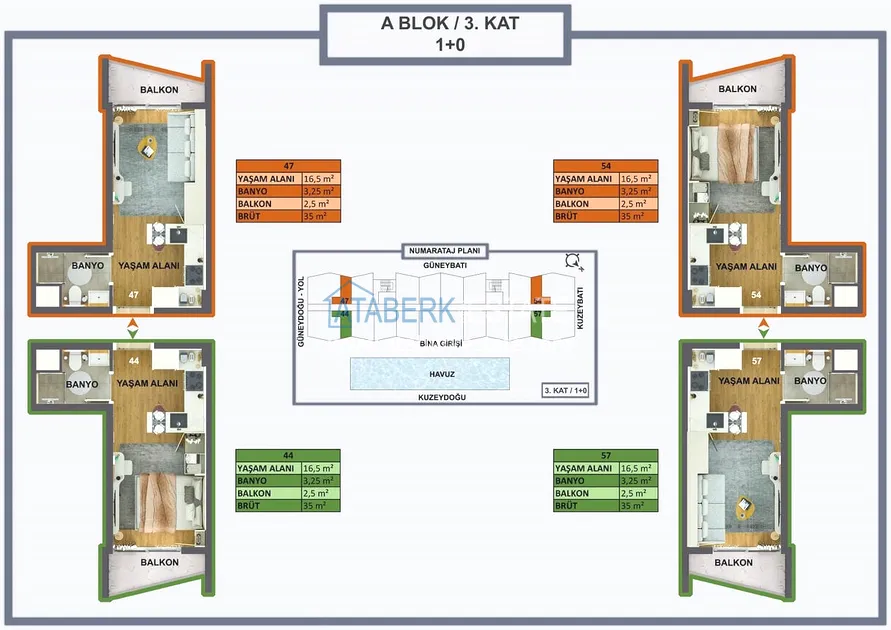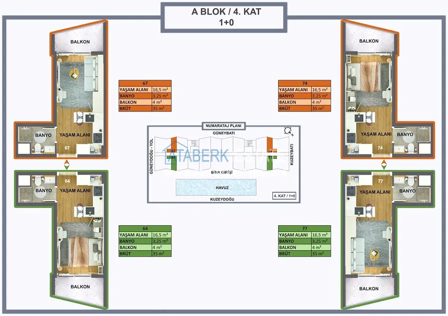 Проект реализуется на участке площадью 6 404 м2, будет состоять из двух блоков на 165 объектов недвижимости – квартиры повышенного комфорта и лофт-виллы, планировки: 1+0, 1+1, 2+1, садовые дуплексы. Площадь апартаментов варьируется от 35 до 120 м2, площадь вилл от 120 до 140 м2. В стоимость включено: полная и качественная чистовая отделка, автоматические жалюзи антрацитового цвета, антрацитовые оконные профили, декоративные подвесные потолки, гардеробная, инфраструктура для проводки газа и кондиционеров, лакированная стальная дверь, лакированные внутренние двери, островная кухня с гранитной мойкой и встроенной бытовой техникой из трех приборов, а также столешница из кварцевого композита.