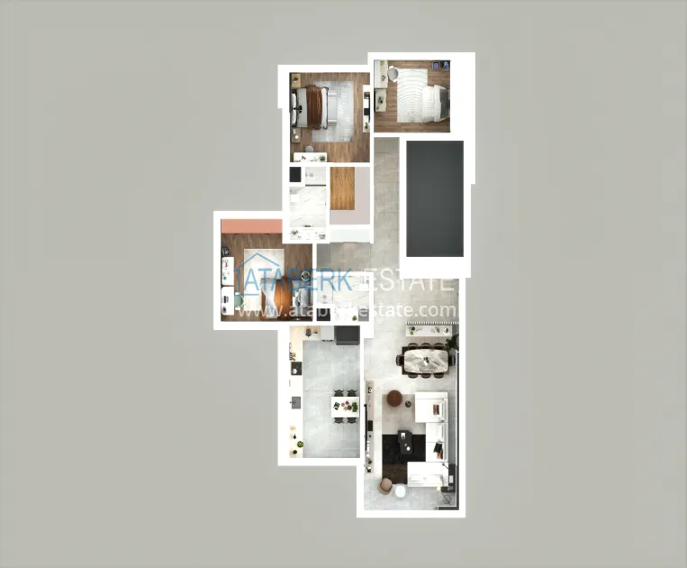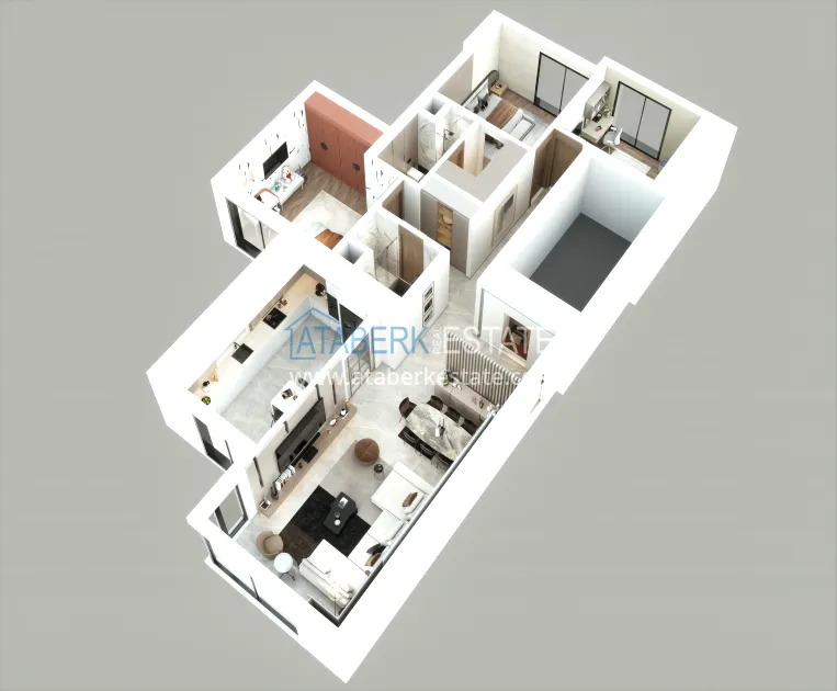 Современный проект реализуется в новой перспективной части Анталии - в районе Чанкая, где формируется застройка более высокого уровня с панорамными видами и более прохладным климатом по сравнению с центром города.