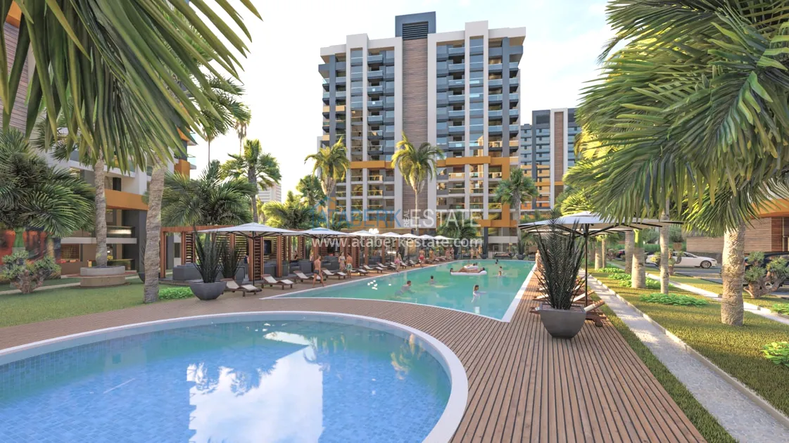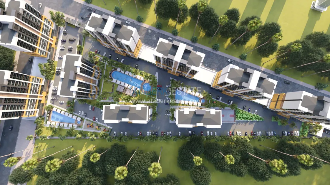 Проект будет построен на площади в 30 000 кв. м, состоять из 9 блоков по 13 этажей, всего 1150 апартаментов и 47 коммерческих помещений. 2 блока группы E1 и E2, это будет апарт-отель с развитой инфраструктурой: закрытый бассейн, хамам, сауна, кафе, фитнес, мойка для автомобилей. В продаже остались квартиры планировки 1+1.