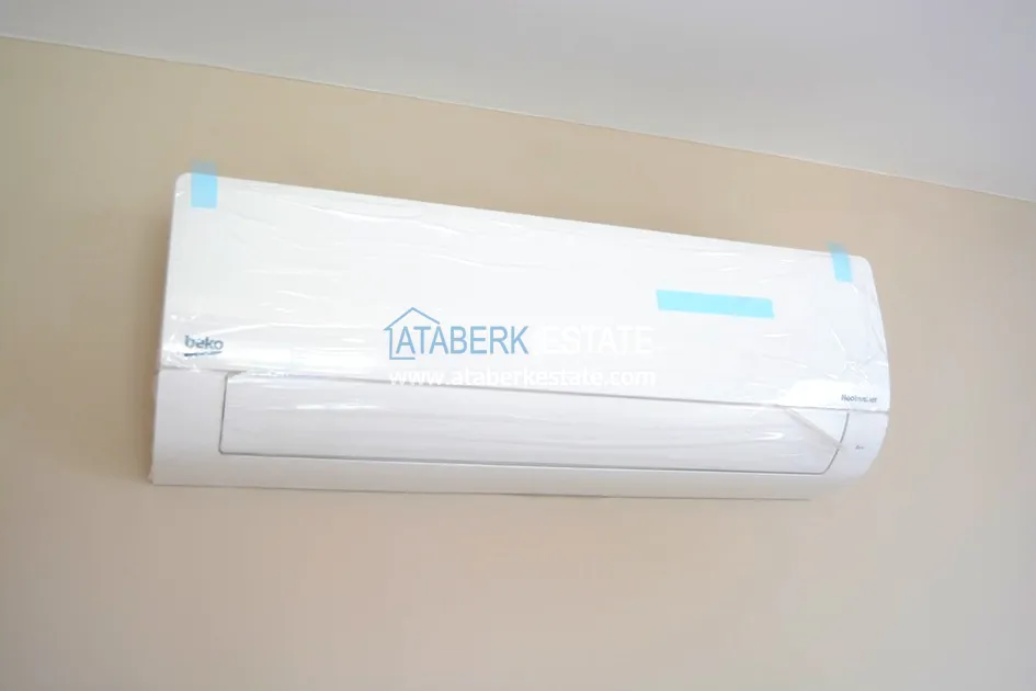 Апартаменты, планировки 2+1 на площади 85 м2 расположены: салон, 2 спальни, кухня оборудованная встроенной кухонной мебелью, плитой, духовым шкафом и вытяжкой, 1 ванная комната, балкон. В квартире есть коридор со встроенным шкафом для одежды. Апартаменты продаются с полной чистовой отделкой и газификацией. В комнатах установлены кондиционеры, рольставни на окнах. На полу- плитка, ламинат. Санузел полностью укомплектован.
