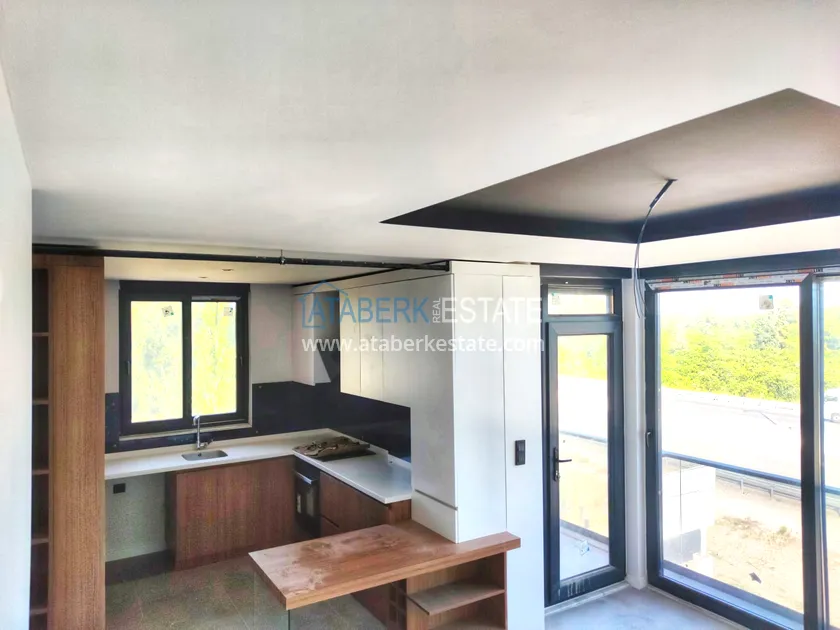 На продажу предложены апартаменты планировки 2+1 площадью 95 м2 и дуплексы планировки 4+1 площадью 230 м2. Из каждой квартиры открывается вид на горы. В жилых комнатах на полу уложен ламинат, есть видеофон и газовый котел. А также встроенный гардеробный шкаф, кухонный гарнитур, набор бытовой техники.