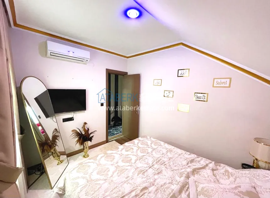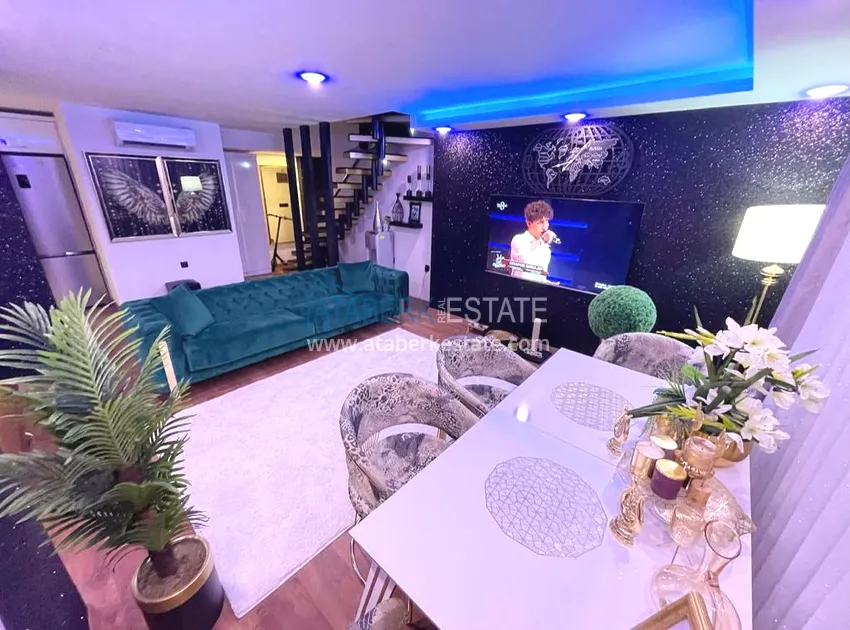 Предлагаемые апартаменты двухуровневые, расположены на 4 этаже, имеют планировку 3+1, общая площадь составляет 150 м2. На данной площади разместились: гостиная, совмещенная с кухней американского типа, 3 спальни, 2 ванные комнаты и 2 балкона с которых открывается красивый вид на горы и территорию комплекса. В квартире выполнен качественный ремонт. В мастер спальне есть личная ванная комната. Пентхаус продается без мебели.