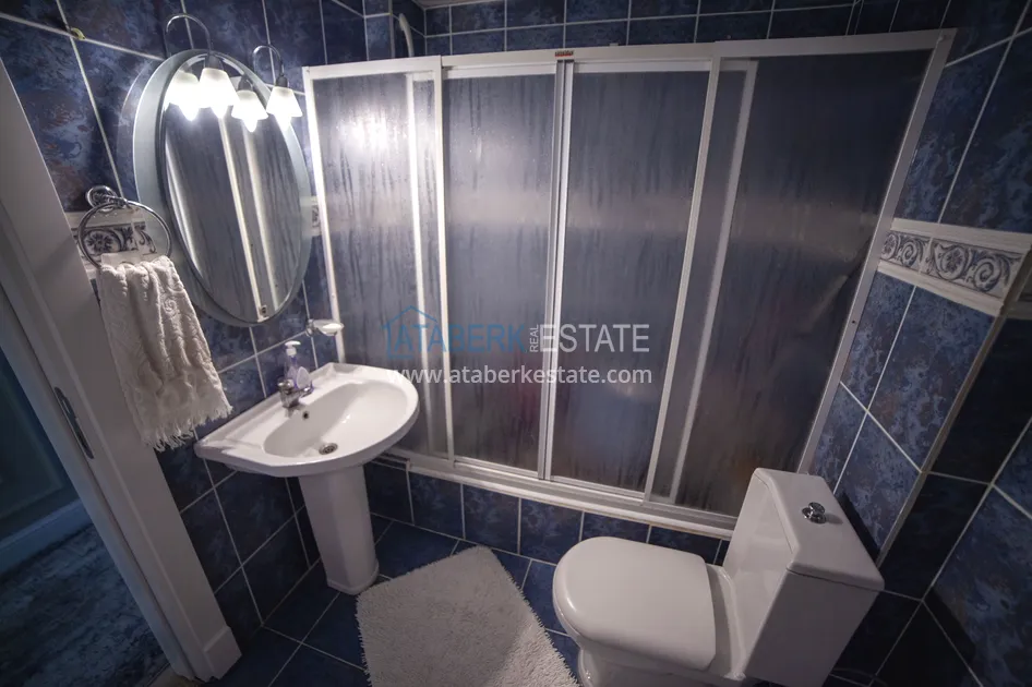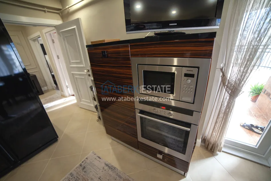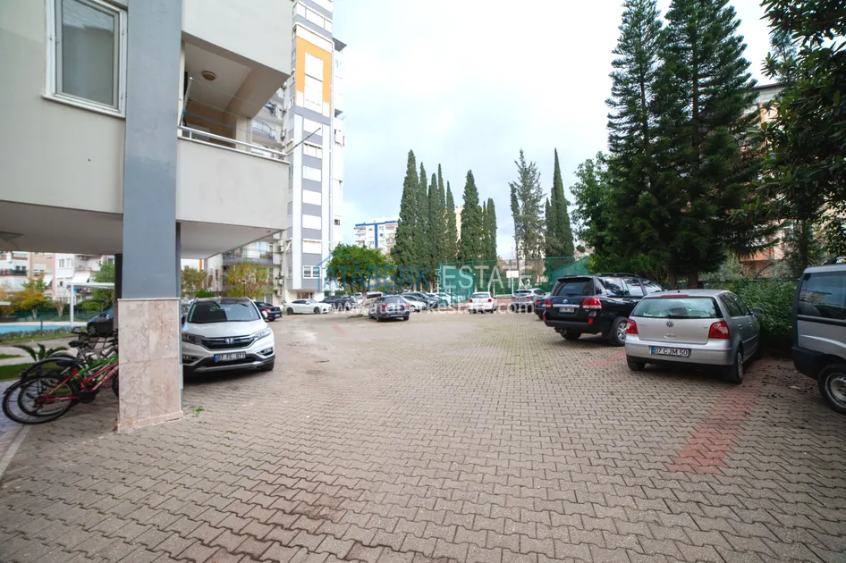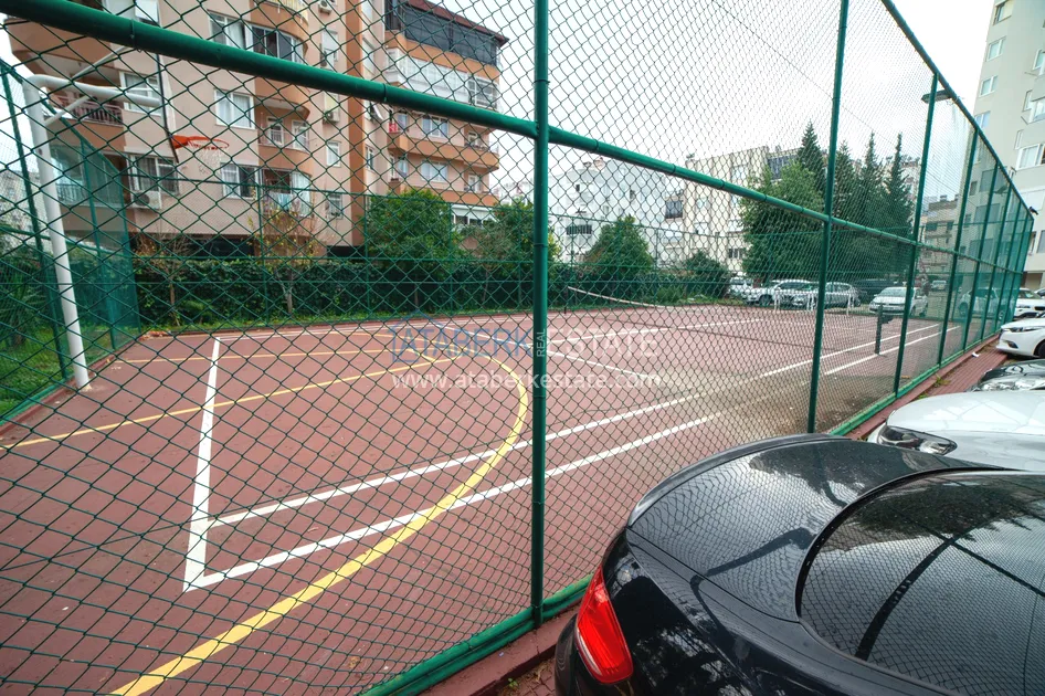 В комплексе два блока, а также закрытая территория и собственной инфраструктурой. Айдат составляет 450 лир в месяц. В комплексе и снаружи и внутри полностью сделан ремонт. Прогулка до прибрежной дороги Лара составляет 700 метров. В пешей доступности есть: банки, частный детский садик, школа, магазины, кофейни, рестораны, отель Акра Барут и спуск на пляж, а также рынок, больница Яшам Хастанеси и аптеки.