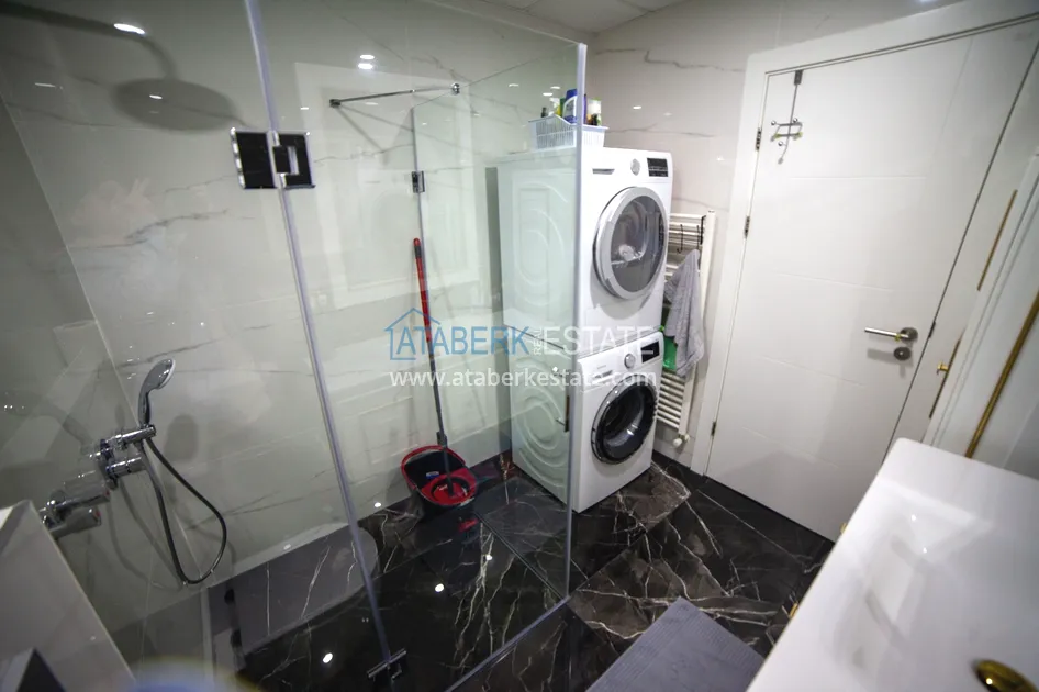 Апартаменты расположены на первом этаже планировки 3+1 площадью 140 м2 – прихожая, салон, отдельного типа кухня, 3 спальни, гардеро2 совмещенных санузла и 2 застекленных балкона. Квартира выставлена на продажу без мебели. В стоимость включены кондиционеры, встроенные шкафы и кухонный гарнитур. За дополнительную плату недвижимость можно приобрести полностью с мебелью и техникой.