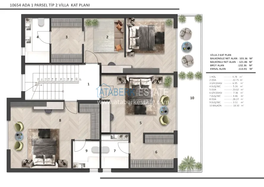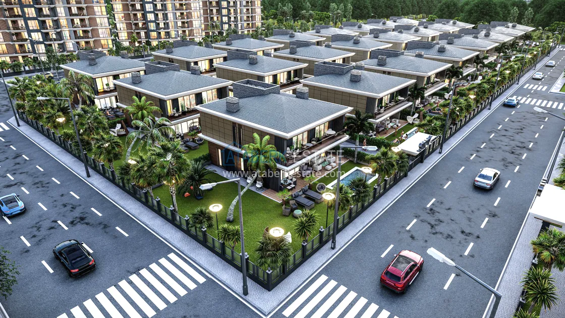 Концепция: Экологически проект, созданный опытными архитекторами, объединяет 24 уникальные виллы, предоставляя вам возможность воплотить свои мечты в реальность. Этот проект стал истинным хитом в районе Лара, микрорайон Эрменек, Анталия. Все виллы двухэтажные и абсолютно идентичные. Каждая из них предлагает планировку 6+1 площадью 345 м2, снабженную сауной, хамамом и римской парной, а также частной территорией площадью 200 м2 и парковкой минимум на 3 машины. Широкие стеклянные фасады, открывающие великолепные сады и террасы, гарантируют вам высокое качество жизни, простор и комфорт в каждый момент вашего пребывания. Все виллы оборудованы различными вариантами проживания, подходящими для любого вкуса и образа жизни, с доступной роскошью.