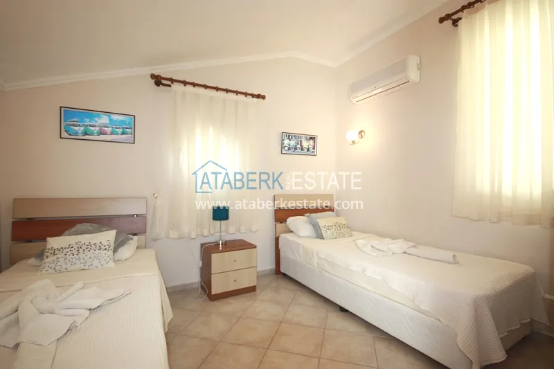 Вилла с собственным бассейном всего в 20 метрах от пляжа в элитном районе курортного города Фетхие. Вилла расположена в респектабельном комплексе вилл у пляжа Чалыш, который славится своими удивительными закатами, которыми можно насладиться с балкона или у бассейна или из одного из многочисленных баров и ресторанов на набережной пляжа Чалыш. До центра Фетхие с его колоритными улочками, пристанью для яхт, базаром, магазинами и пр. можно легко добраться на автомобиле, местном автобусе или водном такси.