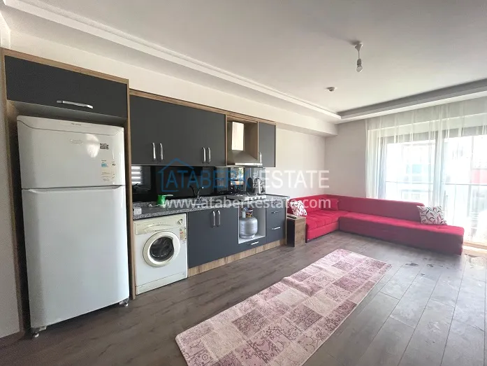 Квартира 1+1 представлена в планировке: гостиная, совмещённая с кухней, спальня, ванная комната, застекленный балкон. Площадь 65 м2(брутто), 45 м2(нетто). Технические характеристики: полная чистовая отделка, выполненная из высококачественных материалов, укомплектованный санузел, кухонный гарнитур, шкаф, межкомнатные двери, стальная входная дверь. Продается с мебелью. Расположена на третьем этаже, 8-этажного жилого комплекса. Дом сдан в 2023 году.