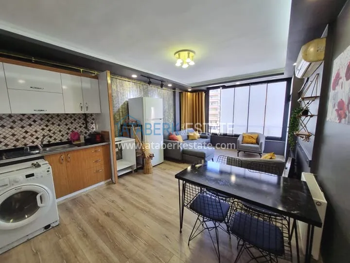 Квартира представлена в планировке 1+1 куда входит: гостиная, совмещённая с кухней, спальня, ванная комната, балкон, квартира продается полностью меблированная с техникой. Площадь 50 м2, расположена на третьем этаже в 8-этажном жилом комплексе с небольшой инфраструктурой: лифт на 10 человек, генератор, открытая парковка. Дом построен в 2020 году.