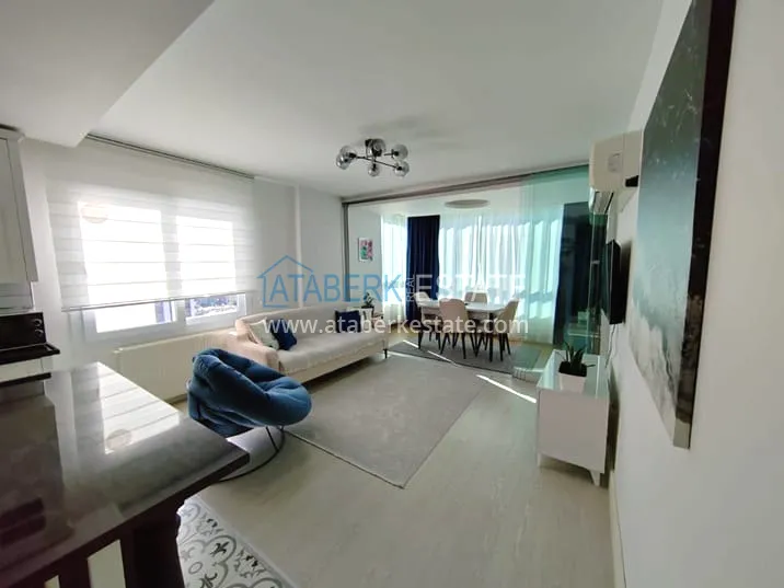 Квартира представлена в планировке 2+1 куда входит: гостиная, совмещённая с кухней, две спальни, две ванные комнаты, два балкона. Технические характеристики: кухонный гарнитур, укомплектованные санузлы, ламинат, керамическая плитка. Продается с мебелью. Дом газифицирован. В жилом комплексе предусмотрена самодостаточная инфраструктура: зона отдыха, беседка, зона барбекю, бассейн, футбольная площадка, детская площадка, охрана, генератор, парковка, лифт.