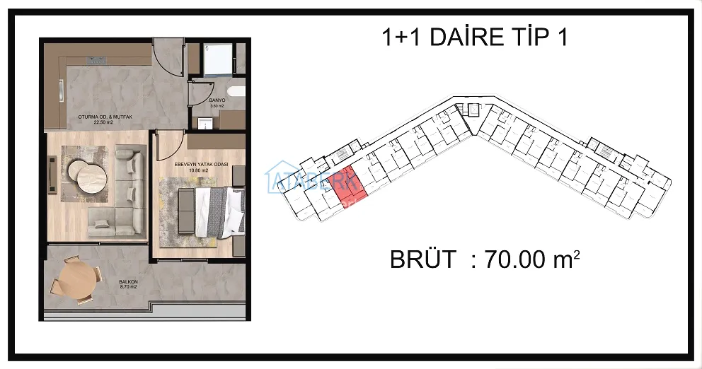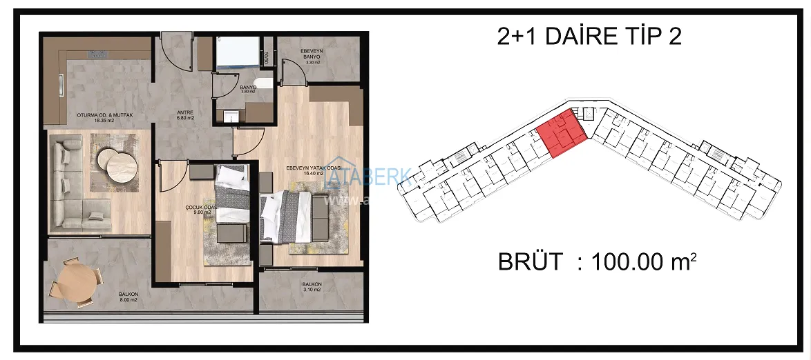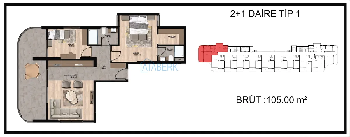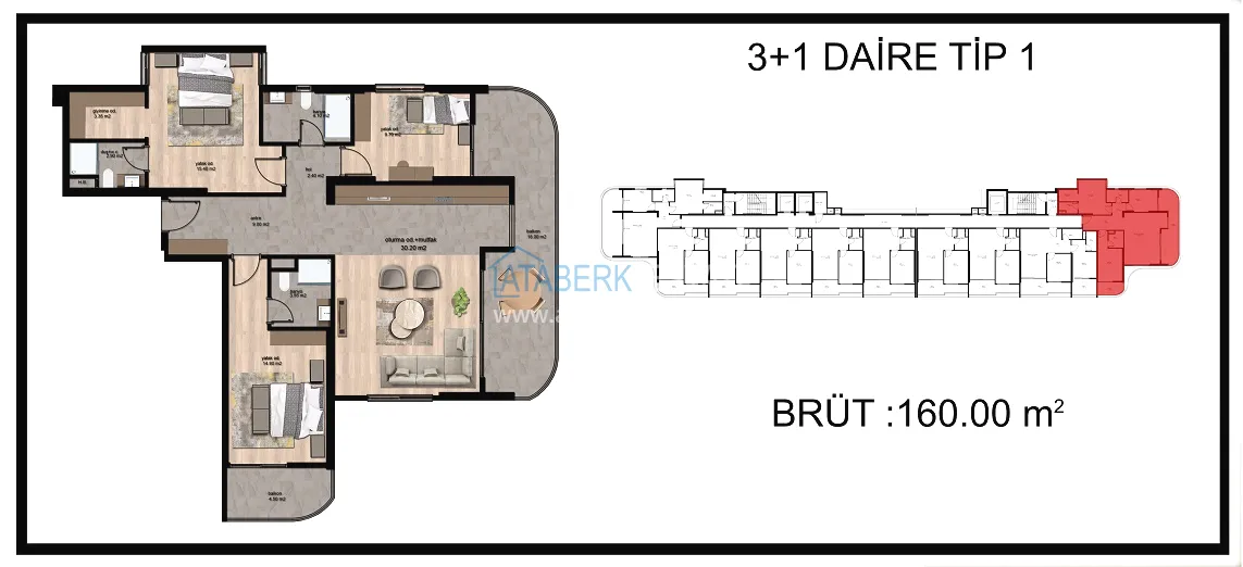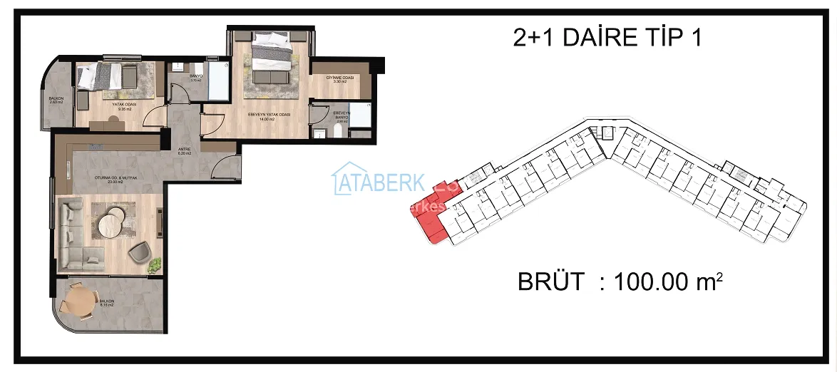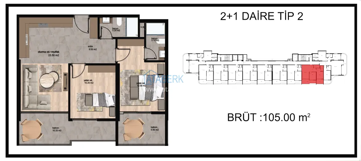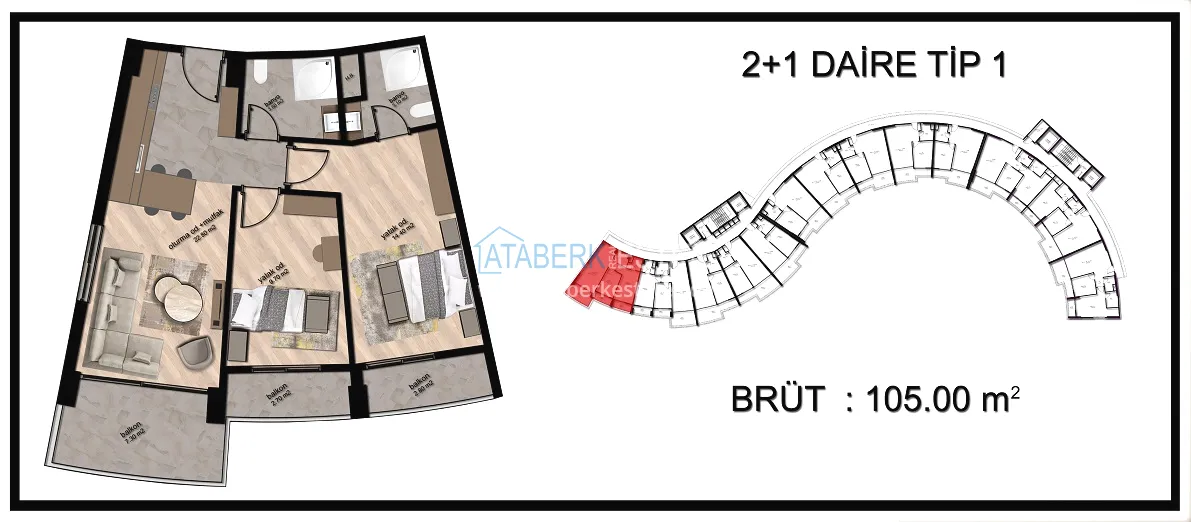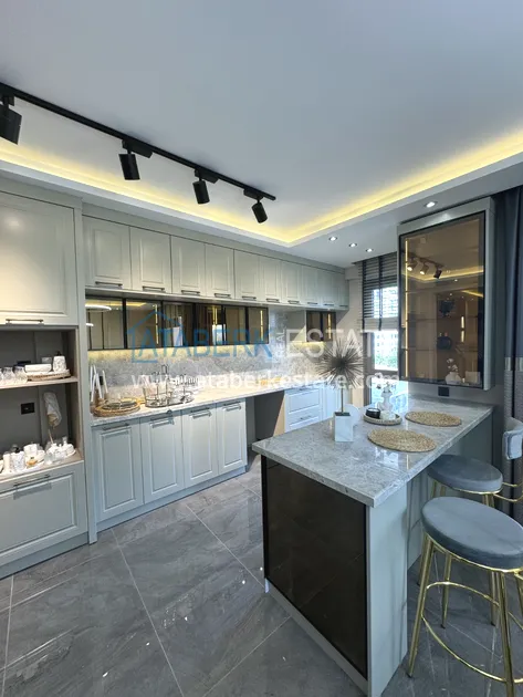 Жилой комплекс состоит из трех 15-этажных блоков и предлагает квартиры в планировках: 1+1 (70–75 м²), 2+1 (100–108 м²), 3+1 (160 м²). Ввод проекта в эксплуатацию запланирован на май 2025 года. На фото представлена демонстрационная квартира — шоурум.