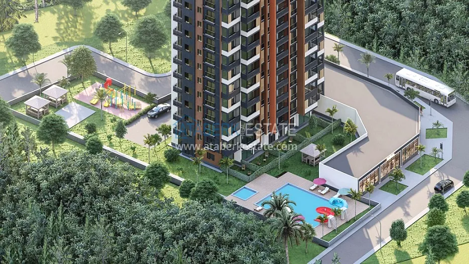 Жилой комплекс будет построен на площади 2974 м2 состоять из одного 14 – этажного блока, квартиры представлены в планировке: 1+1 площадь 67 м2, 2+1 площадью 95 м2. Технические характеристики квартир: полная чистовая отделка, выполненная из высококачественных материалов, подвесной потолок, кухонные шкафы, гардероб, шкафы для ванной комнаты, стальная наружная дверь, окна из пвх, термостойкое стекло, сантехника и душевая кабина первого класса, точечное освещение, тепло-и звукоизоляция, керамическая плитка и ламинат, к комплексу подведена система природного газа. Квартиры имеют вид на море. Поблизости расположена вся необходимая городская инфраструктура: кафе, рестораны, бары, магазины, торговые центры, больницы, аптеки, парки, банки и остановки общественного транспорта. В пешей доступности от комплекса расположены: сетевые магазины, поликлиника, школа, пекарня, ресторан.