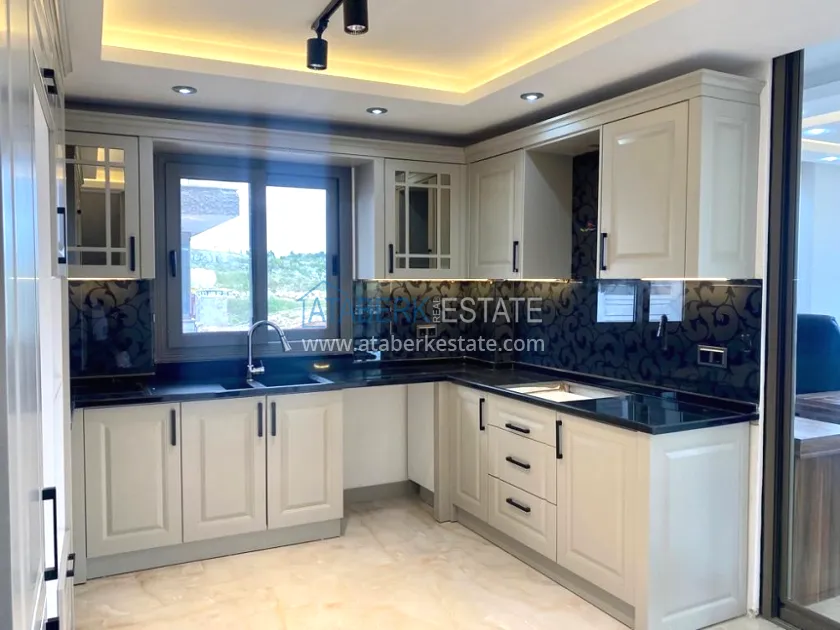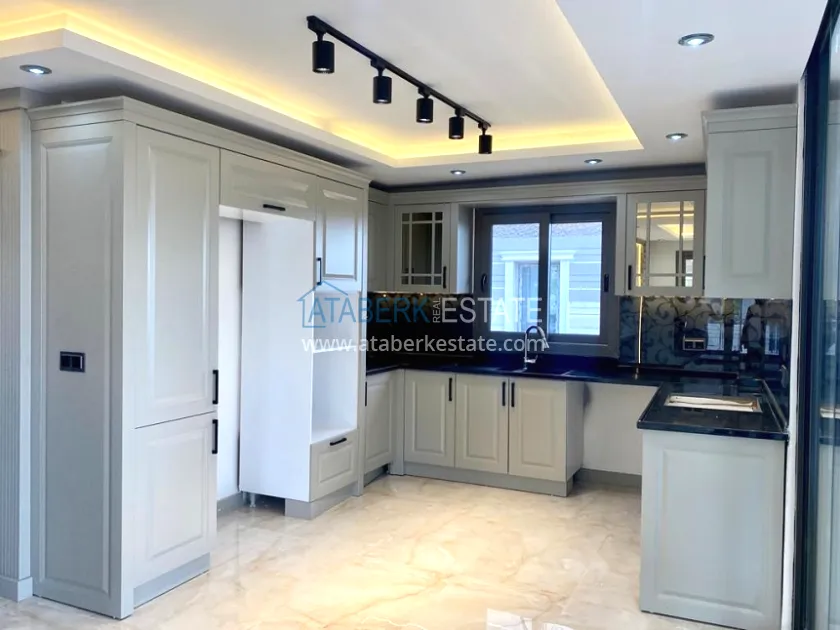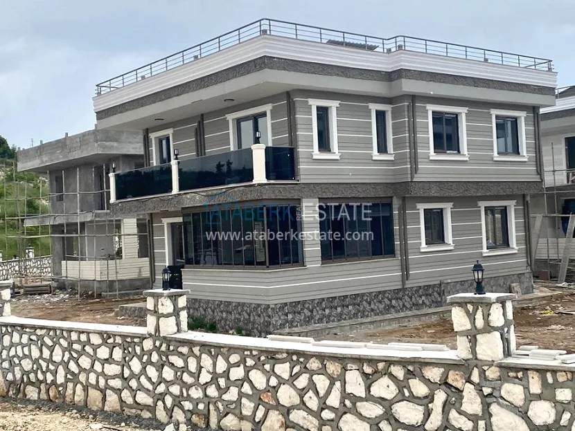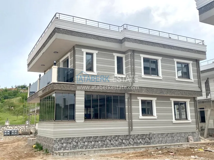 Двухэтажная вилла 5+2 общей площадью 220 м2, представлена в планировке два салона, кухня, пять спален, три санузла (один туалет алатурка), два балкона, на третьем этаже терраса. Технические характеристики: чистовая отделка, кухонный гарнитур, сантехника, полностью укомплектованные санузлы (шкафы, сантехника и душевые кабины первого класса), шкафы в гардеробной. Окончание строительства август 2023 года.