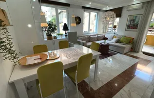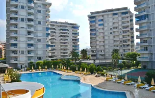 Это превосходный вариант трехкомнатных апартаментов с застекленными балконами и видом на море, в самом центре района Махмутлар на центральной улице