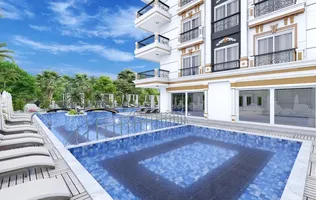 Новостройки Алании! На продажу выставлены двухкомнатные апартаменты в роскошной резиденции недалеко от знаменитого пляжа Инджекум.