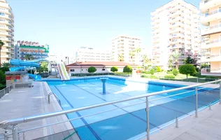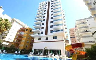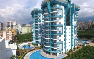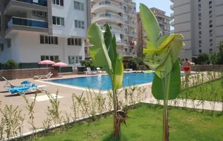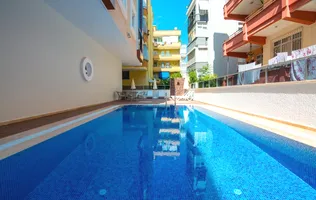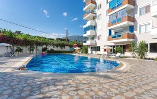 Продается двухкомнатная квартира в благоустроенном жилом комплексе в интернациональном прибрежном районе Алании.