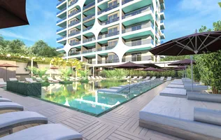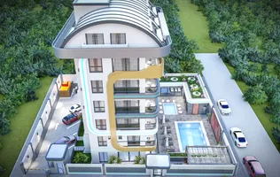 На продаже трехкомнатная квартира в одном из лучших комплексов района Тосмур – первая береговая линия, вдоль горной реки Дим-чай.