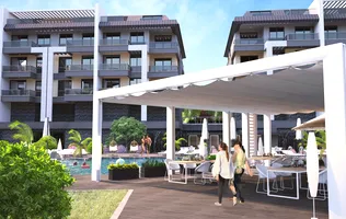 На продаже полностью укомплектованная двухкомнатная квартира в роскошном жилом комплексе, расположенном на центральной улице, рядом с морем.