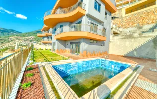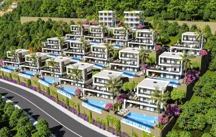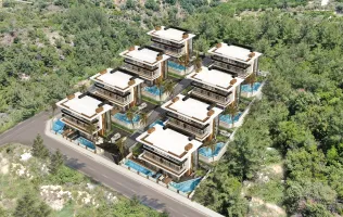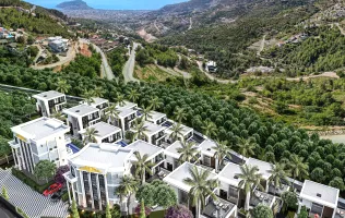 Видовые смежные виллы повышенного комфорта с частной территорией и личным бассейном по ценам напрямую от застройщика в горном районе Алании.