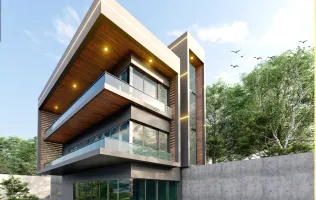 Индивидуальный современный проект в стиле хай-тек с отделкой натуральными качественными эко материалами всего в 650 метрах от известного и популярн