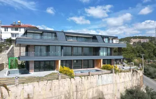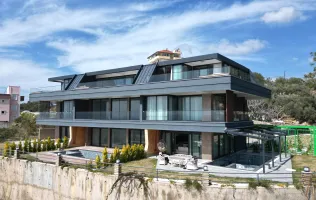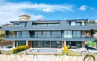 На продаже фешенебельный триплекс с собственным бассейном и садовым участком, расположенный у подножья гор Тавр с исключительным панорамным видом.